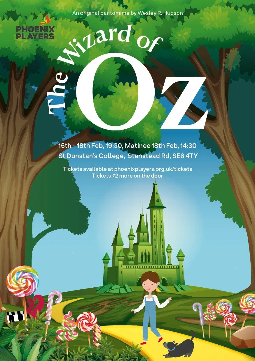Our February 2023 show was a Wesley Hudson original pantomime, The Wizard of Oz. This spectacular show for all ages took place at St Dunstan’s College (right by Catford and Catford Bridge stations) from Wednesday 15th - Saturday 18th February at 7.30pm plus a matinee on the Saturday at 2.30pm.